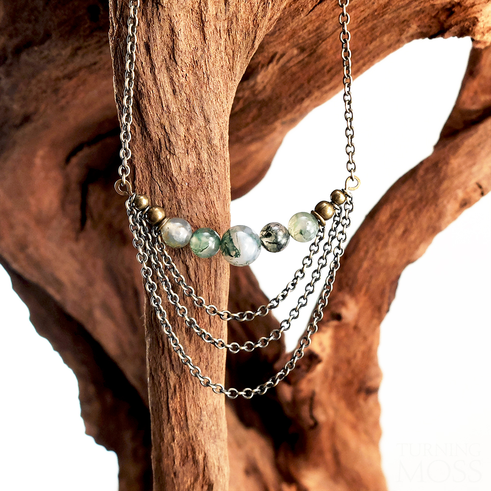 The Walton Collection is focused on an elegantly curved bar of beads, while some styles in this collection are draped with chain, some styles are kept simple allowing the beads to shine on their own. This minimalist style necklace is comfortable and effortless to wear. The 18” length works well with a variety of necklines making it the perfect fit for most.
